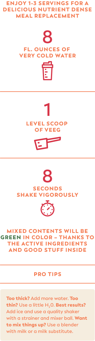 Each serving of Veeg has 16 grams of protein - all made with organic sources for clean good stuff.